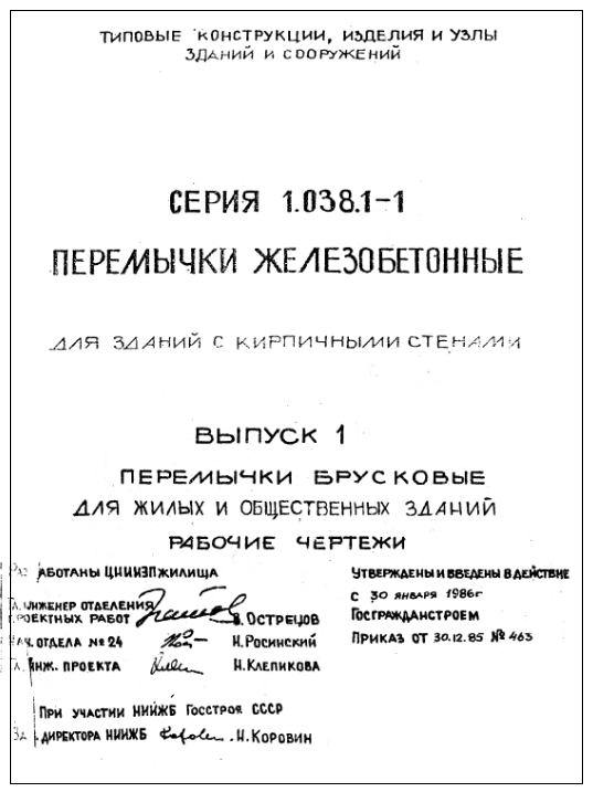 Серия 1.038.1-1. Перемычки железобетонные для зданий с кирпичными стенами