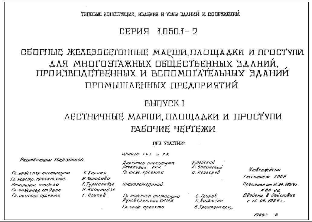 Серия 1.050.1-2. Сборные железобетонные марши, площадки и проступи для зданий