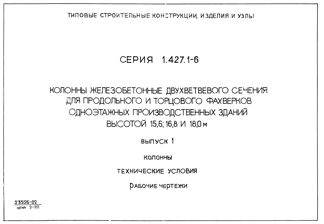 Серия 1.427.1-6. Колонны железобетонные двухветвевого сечения для продольного и торцевого фахверков одноэтажных производственных зданий высотой 15.6. 16.8 и 18 м