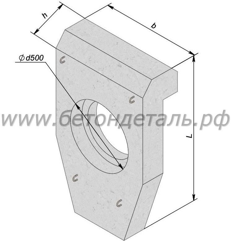 3.Звено оголовника цилиндрическое (ЗКП 17-170) - круглый бетонный блок с отверстием для пропуска периодических водостоков под насыпями железных и автомобильных дорог в г. Оренбург. Данный вид звеньев для труб представляет собой монолитное звено, которое соединяет портальную стенку и звено в одно изделие, которое не требует монтажа. Звено водопропускной трубы предотвращает попаданию грунта насыпи в канал благодаря своей конструкции и высокой несущей способностью. Звено ЗКП является началом и концом водопропускной трубы, расположенной под слоем грунта до 20 метров. Использование звеньев предназначено для безнапорных водотоков, пропускающих небольшие объемы воды