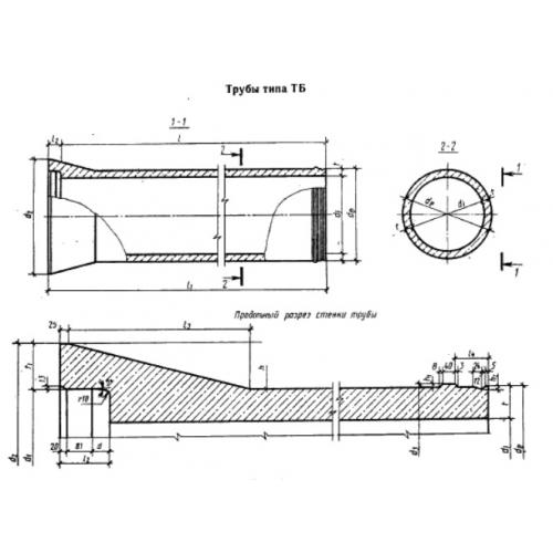 1. ТБ - труба цилиндрическая раструбная с упорным буртиком втулочного конца изделия и стыковыми соединениями, уплотняемыми резиновыми кольцами;