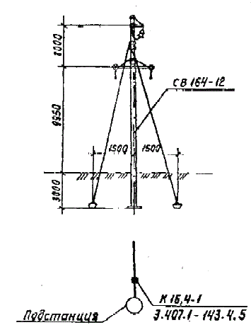 Опоры на базе железобетонных стоек длиной 16.4 м