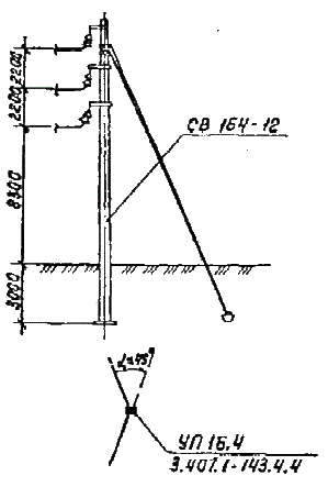 Опора промежуточная УП 16.4 закрепляется в котловане на глубину от 2 до 2,5 метров. Опоры применяются совместно с анкерными плитами. Стойку опоры устанавливают не вертикально, а с наклоном на 10-20 см в сторону, противоположную воздействию усилий от натяжения проводов.