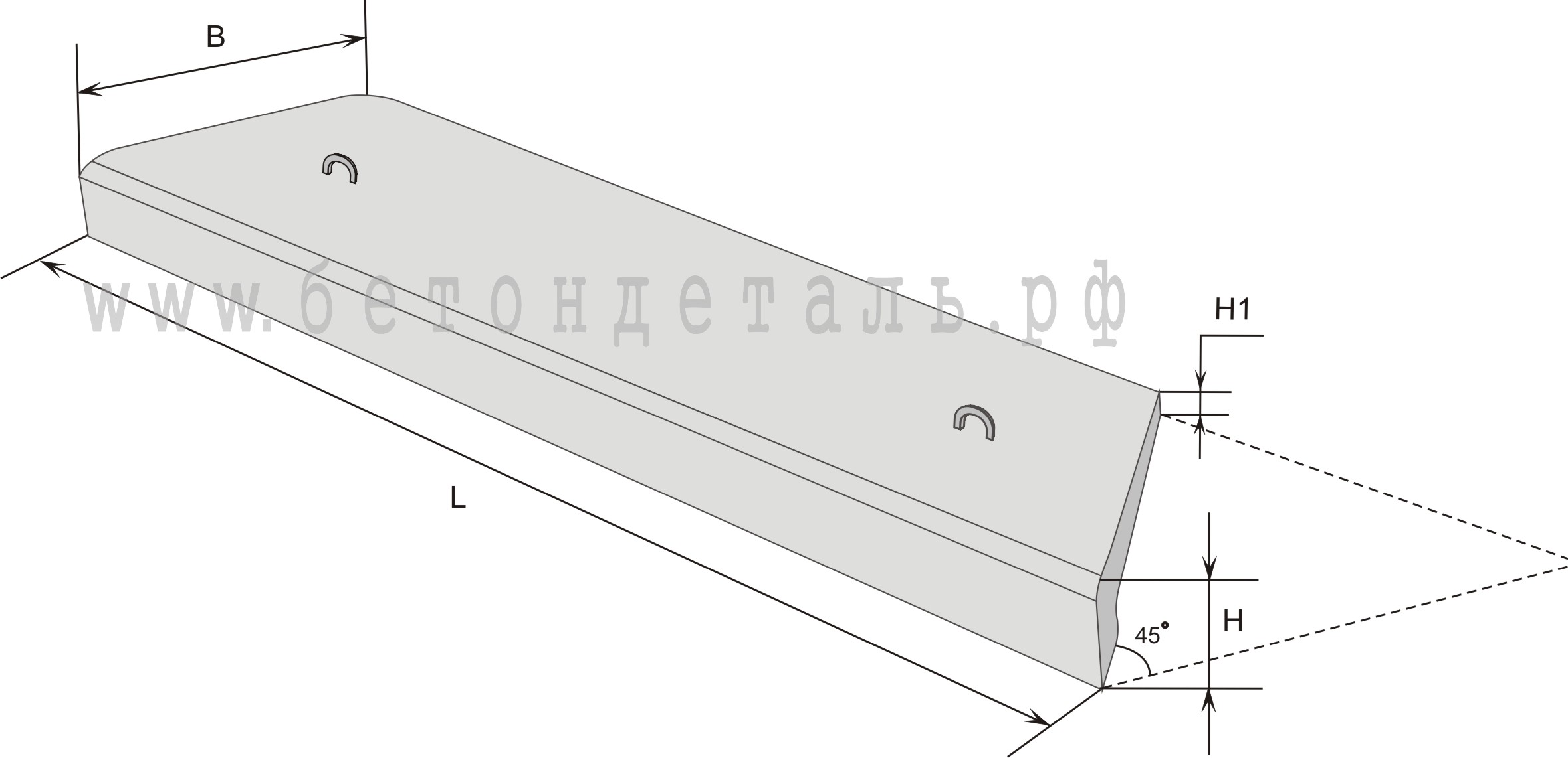 Парапетные плиты имеют высоту – 60-140 мм, ширину – 400-1490 мм, длину – 740-1790 мм, вес – 0,060-0,890 т.