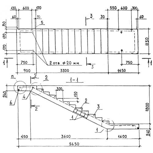 ЛМП 57.11.18  Лестничные марши ребристые с полуплощадками Серия 1.050.1-2.