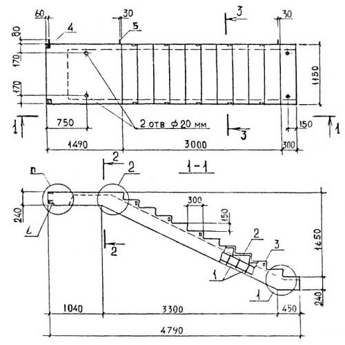 ЛМП 60.11.17  Лестничные марши ребристые с полуплощадками Серия 1.050.1-2.