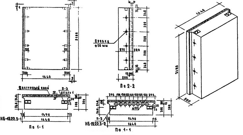 Стеновые легкобетонные блоки толщиной 50 см по Серии 1.133-1.
