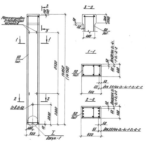 К 144   Железобетонные колонны прямоугольного сечения для одноэтажных производственных зданий Серия 1.423-5.