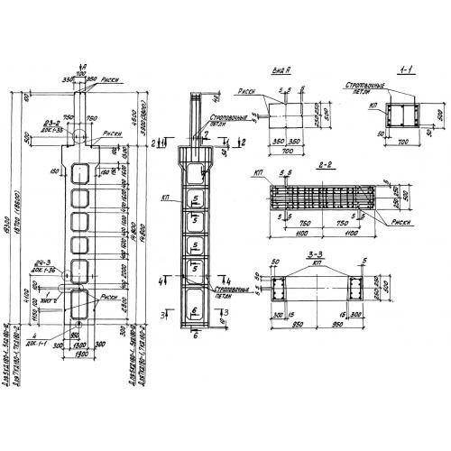 КД 180 Колонны двухветвевые для каркасов зданий, оборудованных электрическими опорными подвесными кранами, или без них по серии  1.424.1-9.