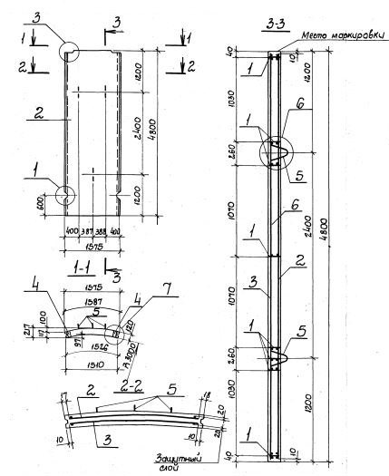 Панель стеновая для цилиндрических сооружений с радиусом кривизны 3 м; высотой 4,8 м; первого типа по нагрузке.