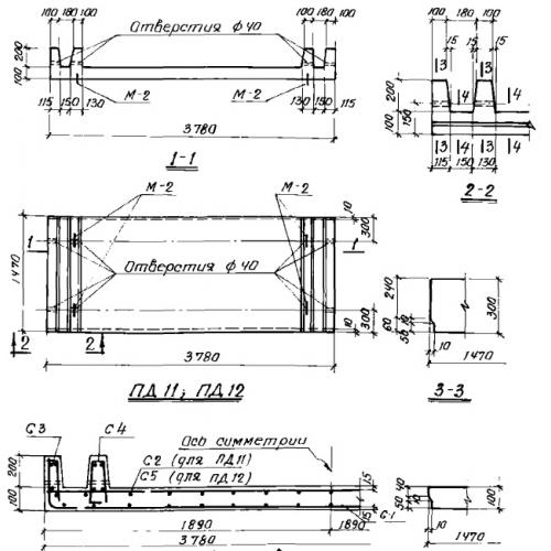 ПД 12 Плиты днища сплошные, состоящие из сборных элементов, по Серии ИС 01-04.